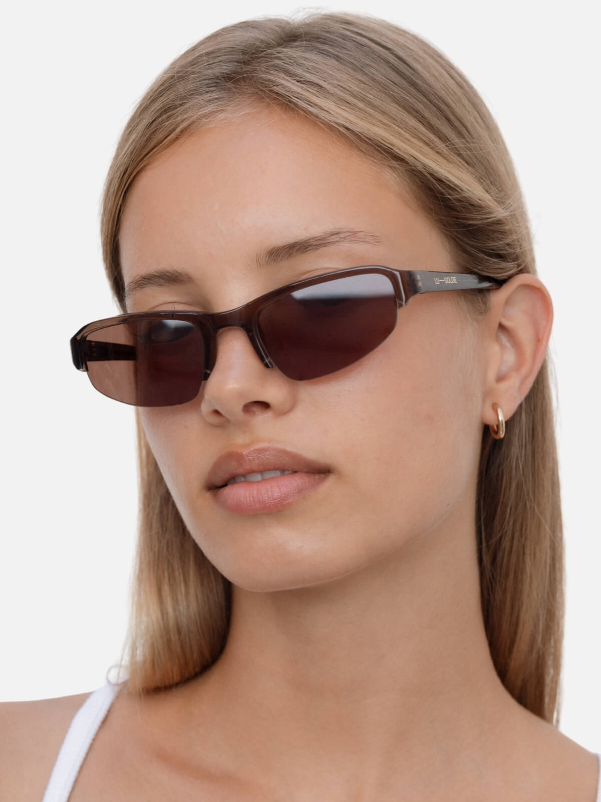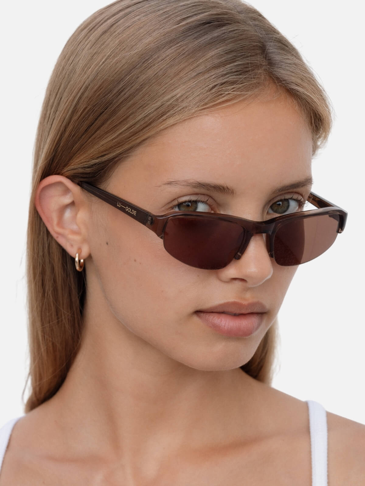 Inlayed LU—GOLDIE logo on both temples
